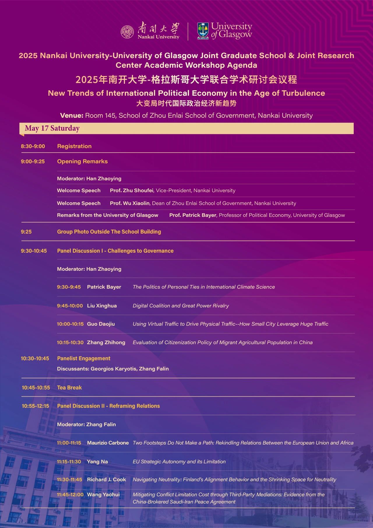 议程发布 | 2025年太阳集团tcy8722-格拉斯哥大学联合学术研讨会议程